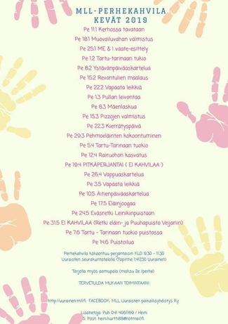 | 3.5.2019 | MLL kevätkokous & lapsille vapaata leikkiä |