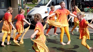 ![]() Liinan nuoret tanssijat liihottivat auringon väreissä. |