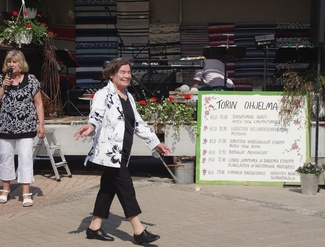 Yhdessä hyvä kiertämään -kevätmarkkinoiden esiintymiskoroke oli niin kauniisti kukkasin ja räsymatoin koristeltu, ettei sitä autonlavaksi oikein osannut hahmottaa. Juontajat Ulla Pasanen ja Terttu Stenman olivat kuin kaksi marjaa ja juonsivat päivän luokanopettajan rentoudella. Mansikkana kakussa kolmas, jo eläkeläisen kiireelliseen elämään siirtynyt luokanopettaja Tellervo Lehtoranta mannekiineineen osoitti, että tyylikäs pukeutuminen ei katso ikää.